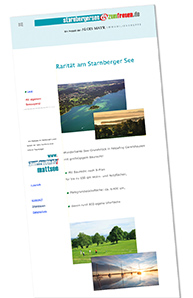 Aktuelle, mehrseitige Information, aktive eMail Adresse!![]() Mehrseitiges Immobilien-Exposé für ein großzügiges Bauvorhaben am Starnberger See. Beworben mit einer semantischen eMail Adresse, gefunden als Landingpage Factsheet. Immobilien zum Freuen! |