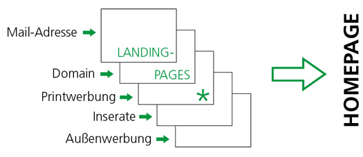 Landingpages beziehen sich auf ein Thema, informieren dazu und führen Interessenten zu Angeboten auf Ihrer Homepage.
